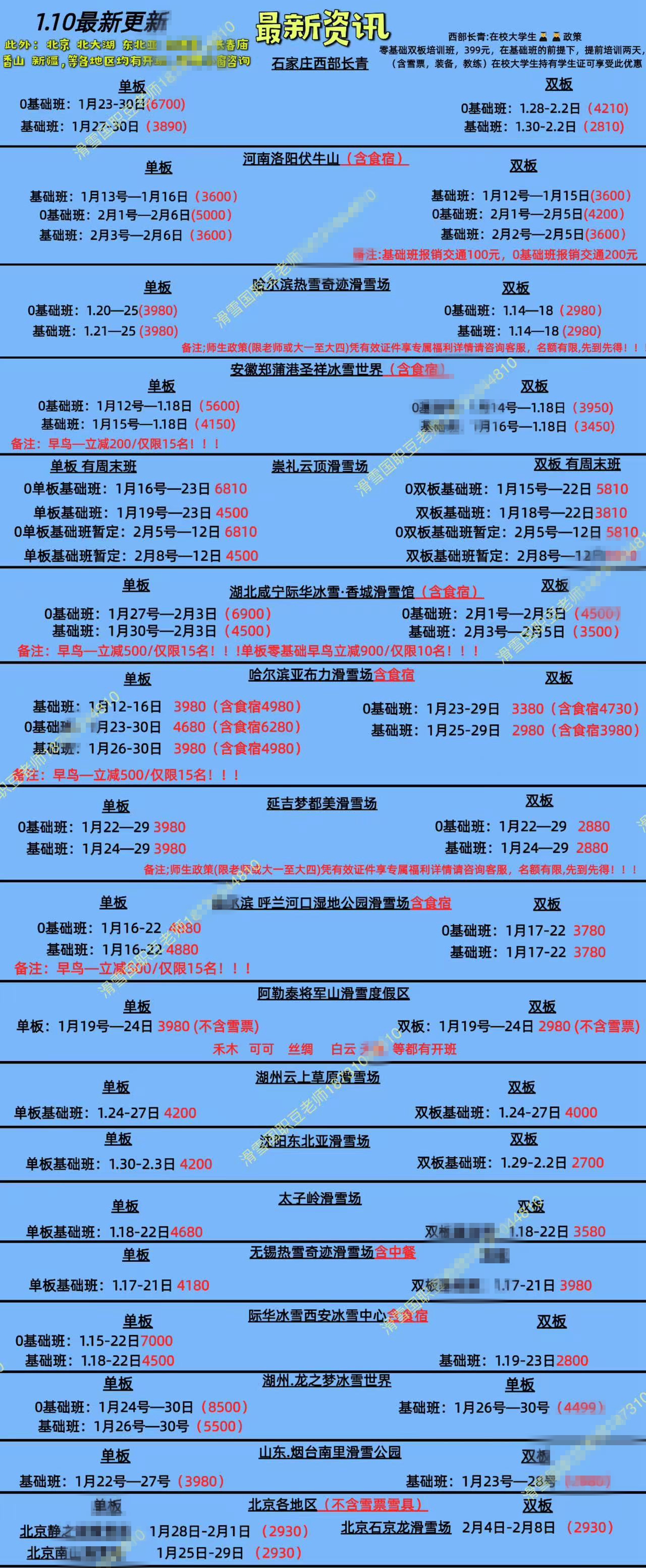 記者以“零基礎(chǔ)”滑雪者想要報(bào)考“滑雪國(guó)職五級(jí)”為由,咨詢了多家滑雪培訓(xùn)機(jī)構(gòu)。一位培訓(xùn)基地的豆先生展示了多個(gè)能提供培訓(xùn)的雪場(chǎng)名單,涉及河北石家莊、河南洛陽、湖北咸寧、黑龍江哈爾濱等多地。當(dāng)記者表示北京及周邊雪場(chǎng)更加方便時(shí),豆先生隨即發(fā)來了包含培訓(xùn)班日期、地點(diǎn)、價(jià)格等一系列報(bào)名細(xì)則的“國(guó)職教練證考試資訊”。