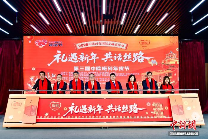 當(dāng)日,“禮遇新年 共話絲路”第三屆中歐班列年貨節(jié)暨2026年陜西省國(guó)際友城嘉年華在位于西安浐灞國(guó)際港的西安愛(ài)菊集團(tuán)園區(qū)開(kāi)幕。