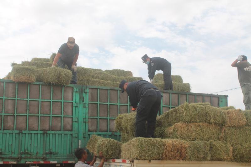 今年以來,內(nèi)蒙古自治區(qū)西部的阿拉善盟持續(xù)高溫少雨,阿拉善左旗蘇宏圖地區(qū)草場退化嚴(yán)重,駝、羊等牲畜草料嚴(yán)重匱乏,影響了牧民正常生產(chǎn)生活。8月9日,從甘肅省購置的草料順利抵達蘇宏圖,但是由于缺少精壯勞動力,牧民們望著一車車救命的草料卻犯起了難。正當(dāng)大家一籌莫展之際,派出所聞訊組織6名民警組成黨員先鋒隊投入勞動,經(jīng)過3天的努力,成功將70噸1200捆草料分裝到牧民車上,受到群眾的一致好評。(牛鑫 肖鵬 梁鎮(zhèn))