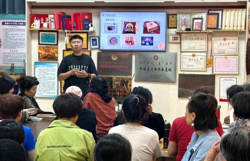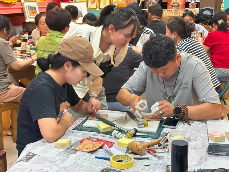 連日來,皮雕技藝培訓班也在如火如荼開展。自治區(qū)級非遺項目皮雕技藝傳承人溫都爾木現(xiàn)場指導學員制作傳統(tǒng)皮雕,并將皮雕技藝創(chuàng)新應(yīng)用于錢包、腰帶等日常用品?!按舜闻嘤栁?0多名農(nóng)牧民參與,我們不僅傳授傳統(tǒng)皮雕工藝,還教授阿拉善寶石鑲嵌技法,助力農(nóng)牧民掌握增收新技能,實現(xiàn)技藝傳承與增收致富雙贏?!睖囟紶柲靖嬖V記者。