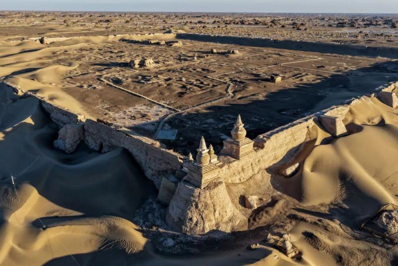黑水城遺址(無(wú)人機(jī)照片)。新華社記者 連振 攝