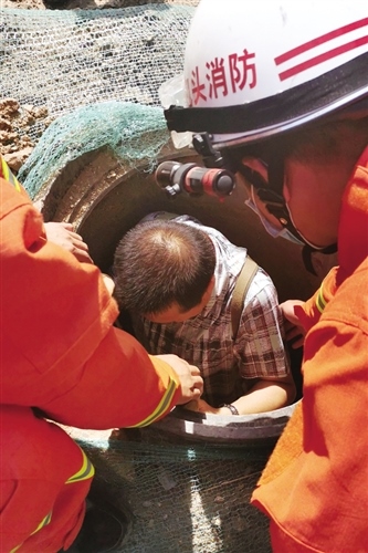 7月9日上午,石拐區(qū)公安分局后營子派出所接到110指令,稱花舞人間西側(cè)有一男子墜入管道井。接到指令后,民警立即與落井男子取得聯(lián)系,詢問其傷情后,立刻驅(qū)車趕往現(xiàn)場。通過落井男子描述的地點及參照物,民警第一時間在包白公路修路段東側(cè)找到了落井男子。