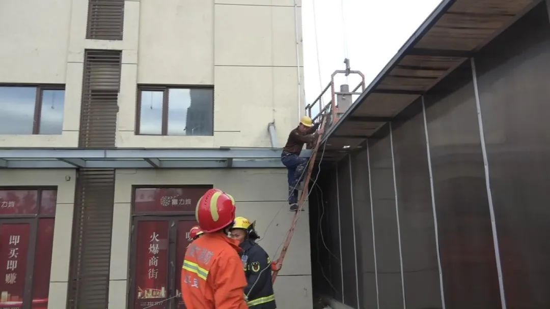 指揮員立即命令第一營(yíng)救小組前往建筑內(nèi)部,試圖通過住戶窗戶進(jìn)行營(yíng)救,當(dāng)營(yíng)救小組到達(dá)指定位置后發(fā)現(xiàn),消防隊(duì)員與被困工人相距太遠(yuǎn),空中營(yíng)救的危險(xiǎn)性和困難程度較高。消防隊(duì)員通過與被困工人交流,提醒他抓好繩索,安撫他的情緒。很快,第二組營(yíng)救的消防隊(duì)員利用掛鉤梯爬到二層位置把纏繞的鋼絲繩拉到地面,4人分別拽一根鋼絲繩,松解纏繞的鋼絲繩,使升降機(jī)恢復(fù)運(yùn)行。而此時(shí),天氣逐漸放晴,風(fēng)力也開始減弱,在消防隊(duì)員們的努力下,升降機(jī)緩緩下降,18時(shí)12分,被困的工人安全降落到地面。