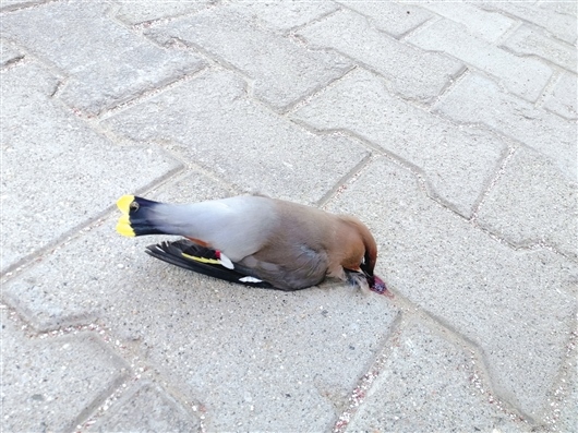 記者隨后向野生動(dòng)物方面的專業(yè)人士進(jìn)行了咨詢,聽了記者對(duì)現(xiàn)場(chǎng)環(huán)境的描述,專業(yè)人士表示,這些太平鳥很有可能是在飛行的時(shí)候慌不擇路撞到小區(qū)的樓體,小區(qū)樓體墻面顏色為橙黃色,而太平鳥喜歡在黃昏時(shí)分群飛尋找棲息地,與晚霞顏色接近的墻壁也容易影響太平鳥快速飛行時(shí)對(duì)距離的判斷。