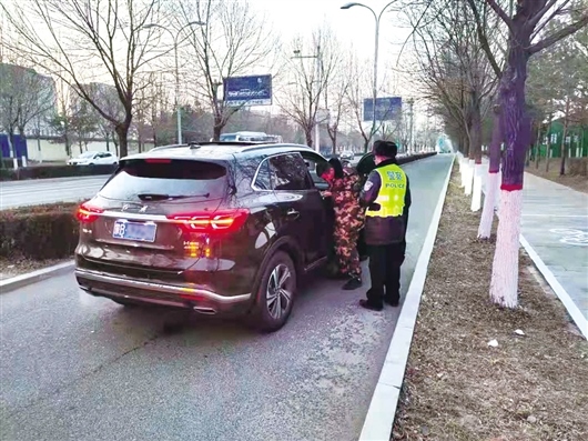 12月20日17時15分,九原區(qū)交管大隊第三警務(wù)區(qū)執(zhí)勤民警正駕駛警車在轄區(qū)巡邏清理違停車輛,當巡邏至緯四路與經(jīng)二路交叉口時,他們發(fā)現(xiàn)一輛黑色越野車停在緯四路非機動車道內(nèi)且打著雙閃?!翱吹杰嚧蛑p閃燈,想著可能是車上的人有啥困難,我們就把警車開到附近,看到一名年輕男子正在車周圍焦急地來回徘徊,神情特別緊張?!眻?zhí)勤民警說。