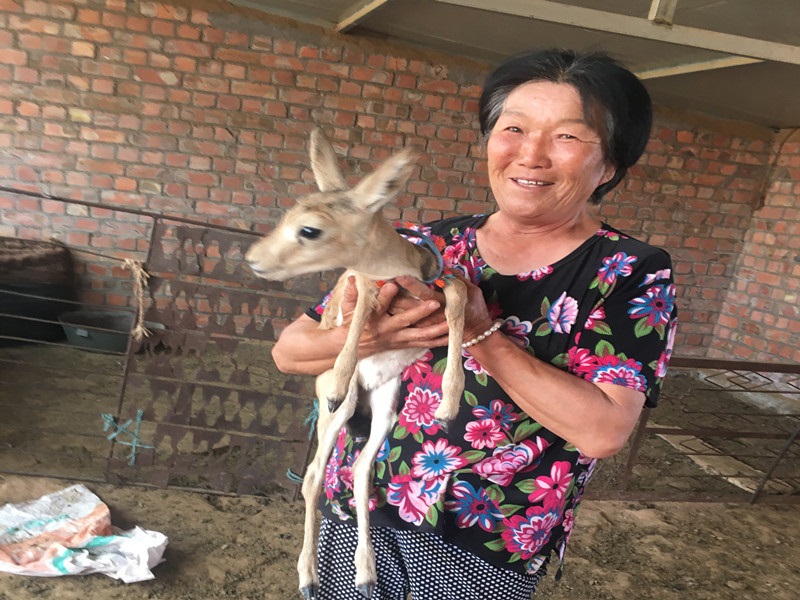 受傷黃羊在護(hù)邊員寶日夫家中