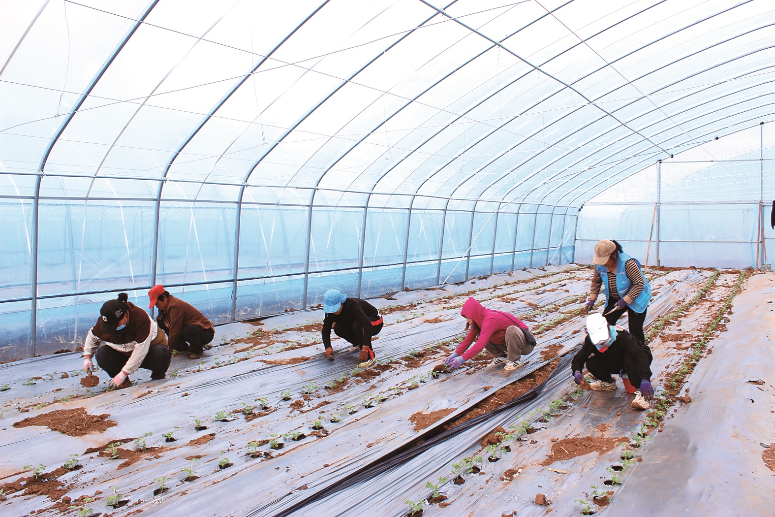 初夏時節(jié),走進寧城縣八里罕鎮(zhèn)七家營子村新建的冷棚內(nèi),農(nóng)戶們正搶抓農(nóng)時栽植西瓜秧苗。