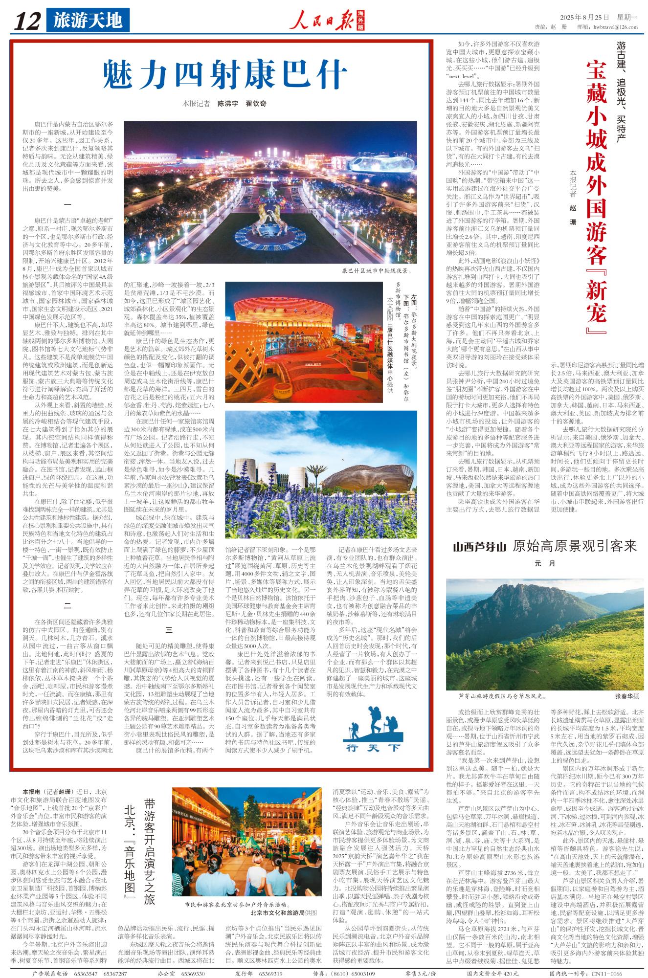 2025年8月25日,《人民日報海外版》第12版刊發(fā)題為《魅力四射康巴什》的文章,報道了因工作關(guān)系,記者多次來到康巴什,反復領(lǐng)略其特質(zhì)與韻味。無論從建筑精美、綠化品質(zhì)及文化意蘊等方面來看,該城都是現(xiàn)代城市中一顆耀眼的明珠。所去之人,多會感到驚喜并發(fā)出由衷的贊美。