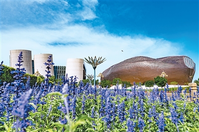從外觀上來看,斜置的墻壁、反重力的扭曲線條、玻璃的通透與金屬的冷峻相結(jié)合等現(xiàn)代建筑手段,在七大建筑得到了恰如其分的展現(xiàn)。其內(nèi)部空間結(jié)構(gòu)同樣值得稱贊。在博物館,記者走遍各個展區(qū),從樓梯、窗戶、展區(qū)來看,其空間結(jié)構(gòu)與功能布局是美觀和實用的完美融合。在圖書館,記者發(fā)現(xiàn),遠山框進窗戶,綠色環(huán)繞四周。在這里,功能性的光芒與美學性的溫度和諧共生。
