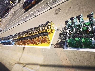 看見(jiàn)共享單車(chē)停車(chē)區(qū)域是彩色的,很多市民也表示很有新意。“之前停車(chē)區(qū)域的劃線(xiàn)已經(jīng)不清楚了,我們?cè)谕\?chē)時(shí)不好找不說(shuō),各類(lèi)單車(chē)混放在一起,就算再規(guī)范停車(chē)看起來(lái)也不如這樣藍(lán)色、綠色、黃色不同顏色,各自劃線(xiàn)看起來(lái)清晰。而且這條街在黃、綠、藍(lán)多彩顏色的襯托下顯得也很有活力,炎炎夏日看起來(lái)也很清爽?!闭们皝?lái)停車(chē)的市民張女士在將一輛美團(tuán)單車(chē)有序停放后開(kāi)心地說(shuō),并且在離開(kāi)前還拍照留了念。
