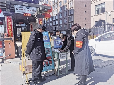 記者跟隨工作人員來到轄區(qū)地新街坊小區(qū),幾名社區(qū)工作人員正在小區(qū)門口負(fù)責(zé)疫情防控,“您好!請問您去哪棟樓?請下車登記信息。謝謝!”“請居民佩戴好口罩”……針對出入小區(qū)的人員,社區(qū)工作人員都一一仔細(xì)核查,宣傳防疫信息?!按汗?jié)長假過后,很多事都堆到今天了,所以格外忙?!卑⒗票甭飞鐓^(qū)黨總支書記王海瓊說,阿拉善北路社區(qū)很多網(wǎng)格員都放棄了與家人團(tuán)聚的時間,主動下沉到各個小區(qū)開展疫情防控工作,實行24小時輪崗制,做好外地返呼人員登記和掃碼工作,保證轄區(qū)防控安全。除此之外,還積極參與禁燃煙花爆竹、垃圾分類宣傳等工作,讓政策落到實處。