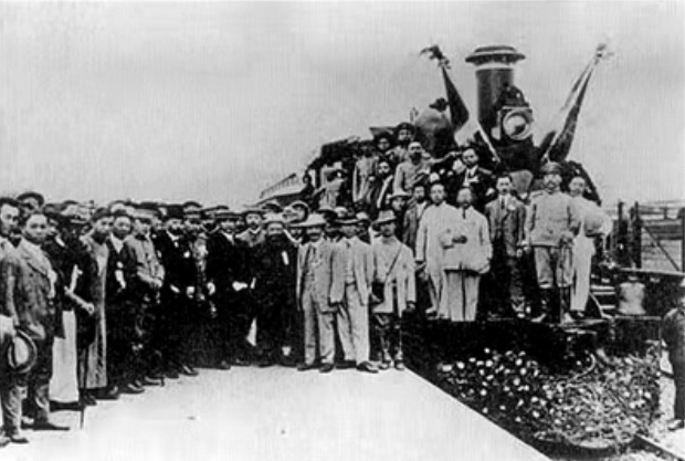 1912年9月6日,孫中山視察詹天佑修建京張鐵路時,在張家口車站月臺上合影。(資料圖)1907年鋪設的老鐵軌。