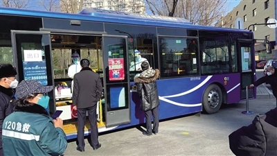 2月28日上午,在呼和浩特市新華大街附近,一輛敞開了玻璃窗的公交車??吭诘缆放裕用駛儼凑找?guī)定間隔排隊,依次來到公交車前進行核酸采樣,醫(yī)務(wù)人員坐在車廂座椅有序地為市民進行核酸采樣,受檢人員不用上車,站在窗外,采完即走。