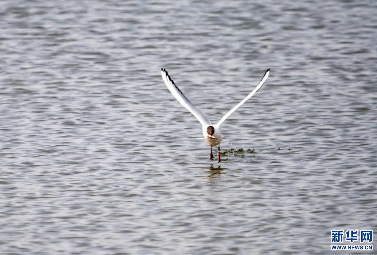 一只候鳥在土默特左旗海流水庫覓食休息。新華網發(fā)(陽光 攝)