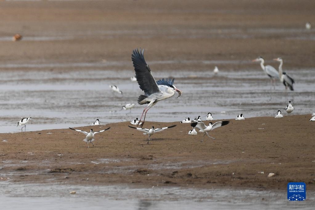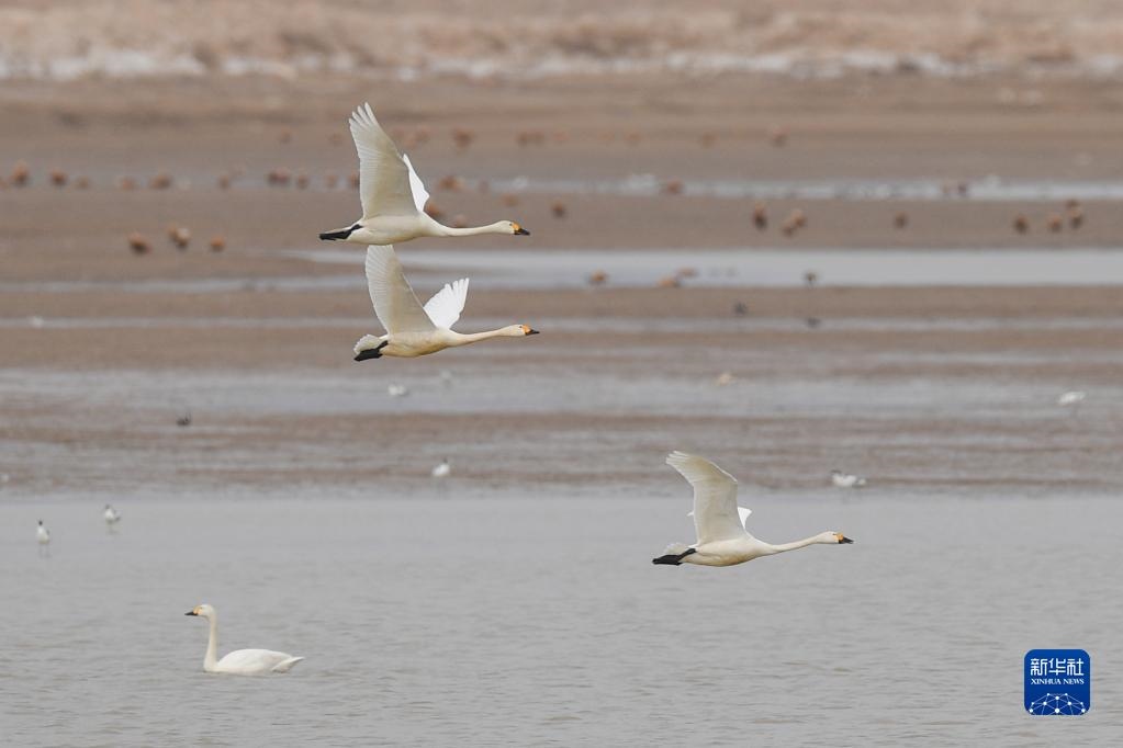 隨著氣溫回升,內(nèi)蒙古呼和浩特市土默特左旗海流水庫迎來了大批遷徙候鳥。它們在這里休憩覓食,為海流水庫增添勃勃生機。