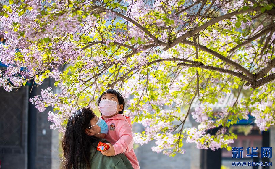 4月20日,市民在位于呼和浩特市的內(nèi)蒙古將軍衙署博物院觀賞盛開的丁香花。新華網(wǎng)發(fā)(丁根厚 攝)