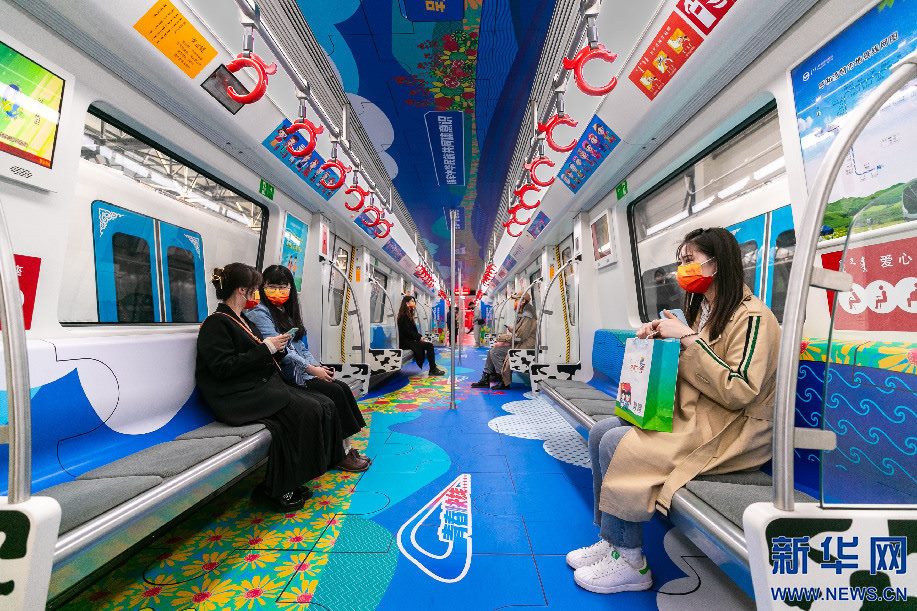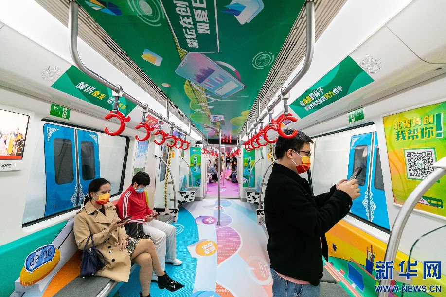5月3日,呼和浩特市民乘坐“青春快線”主題列車。新華網(wǎng)發(fā)(丁根厚攝)