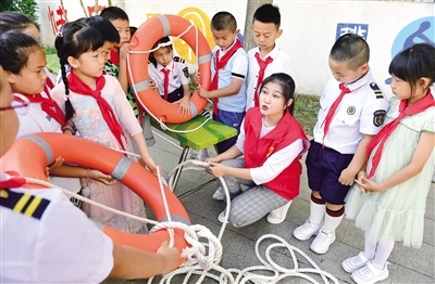 7月4日,呼和浩特市玉泉區(qū)五塔寺東街小學(xué)學(xué)生在暑期安全教育活動中學(xué)習(xí)救生圈使用方法。暑期來臨,學(xué)生溺水事件進入高發(fā)期,7月2日,自治區(qū)黨委教育工委、教育廳發(fā)布了致全區(qū)學(xué)生家長的一封信,讓家長們充分認(rèn)識溺水事故的危害性,做好預(yù)防溺水的家庭教育,堅決杜絕溺水等安全事故的發(fā)生。 (記者 王磊 )
