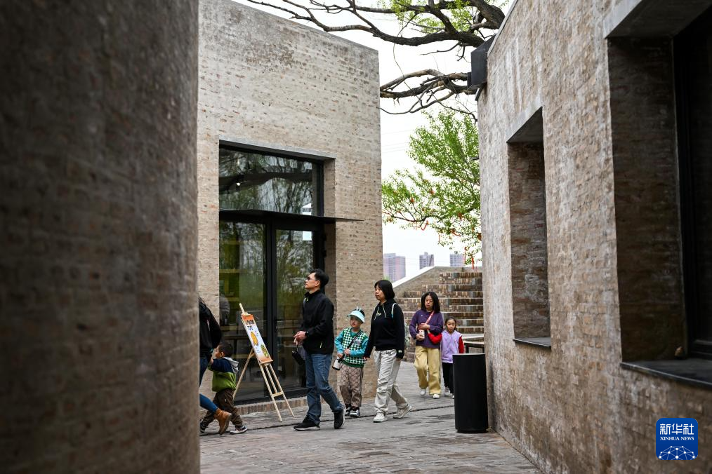 5月4日,游客在位于回民區(qū)西烏素圖村的回空間藝術(shù)中心游玩。