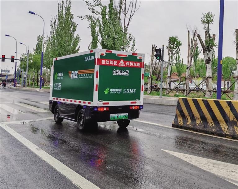 打開專屬App,掃碼開啟車廂,放入快件,關(guān)車廂,發(fā)送指令,無人快遞車上路了。這是記者5月9日在呼和浩特市郵政分公司(以下簡稱“公司”)寄遞事業(yè)部直投中心看到的一幕。