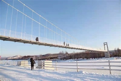 新建的“守望相助橋”橫跨根河兩岸,連接市區(qū)和蒼狼山原生態(tài)景區(qū),是一處集自然景觀和人文景觀于一體的新景點(diǎn)。橋面距離封凍的冰河十幾米高,造型優(yōu)美、張力十足。橋梁只供行人通過(guò),站在橋上看過(guò)去,腳下是清澈透明的冰河,遠(yuǎn)處是原始森林,獨(dú)特的美景盡收眼底。