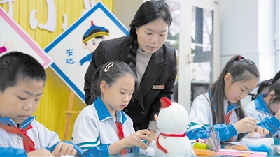 “全國大眾冰雪季給我們帶來了一個絕佳的主題切入點,讓傳統(tǒng)的羊毛氈工藝與冰雪運動相互交融碰撞,孩子們在戳刺羊毛的過程中,對冰雪文化有了更深層次的理解,也對非遺技藝充滿敬意。”健康街小學(xué)美術(shù)教師山丹邊說邊悉心指導(dǎo)學(xué)生把握形狀、色彩與紋理,幫助他們將創(chuàng)意更好地在羊毛氈作品中呈現(xiàn)。“我在制作這個滑雪小人的時候,就一直在想自己滑雪時的快樂,每戳一針都很用心,希望能把這份快樂表現(xiàn)在作品里?!彼哪甓鄬W(xué)生宋子祺說。