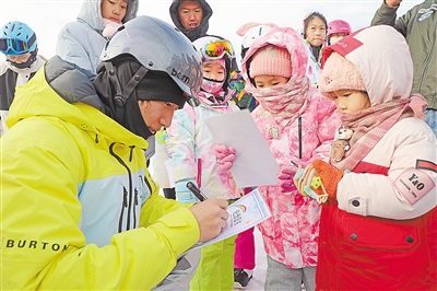 “十四冬”自由式滑雪公開(kāi)組男子大跳臺(tái)冠軍楊昊回家鄉(xiāng)上滑雪公開(kāi)課