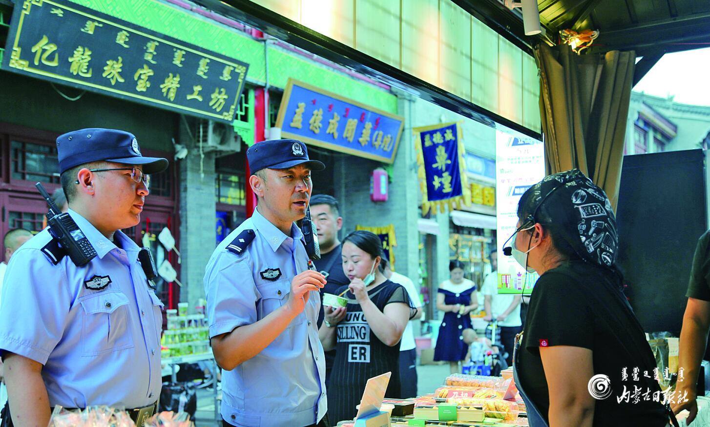 呼和浩特市玉泉區(qū)公安分局景區(qū)治安派出所民警立足大召寺AAAA 級景區(qū)及周邊治安管控和服務(wù)管理實(shí)際,加強(qiáng)日常巡邏,積極服務(wù)群眾、化解矛盾。李文彬 攝
