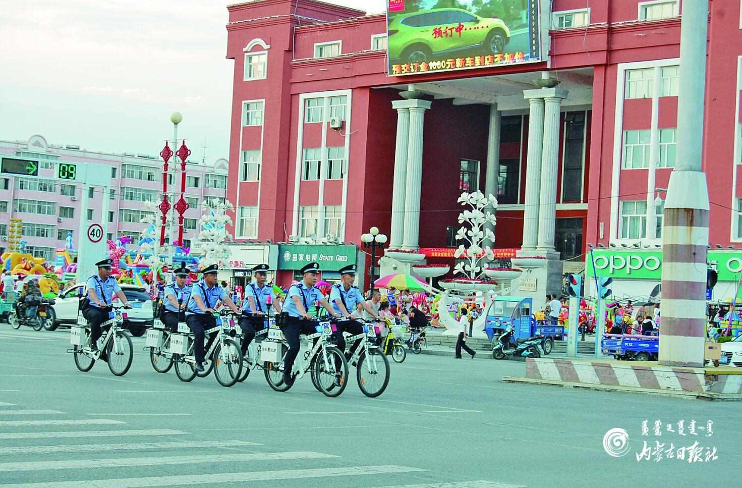 興安盟扎賚特旗公安局民警騎自行車在主干道巡邏。為確保社會面 安全穩(wěn)定,每晚7點(diǎn)至9點(diǎn),民警上街開展巡邏防控,及時發(fā)現(xiàn)安全隱患,增 強(qiáng)群眾安全感。 李健 攝