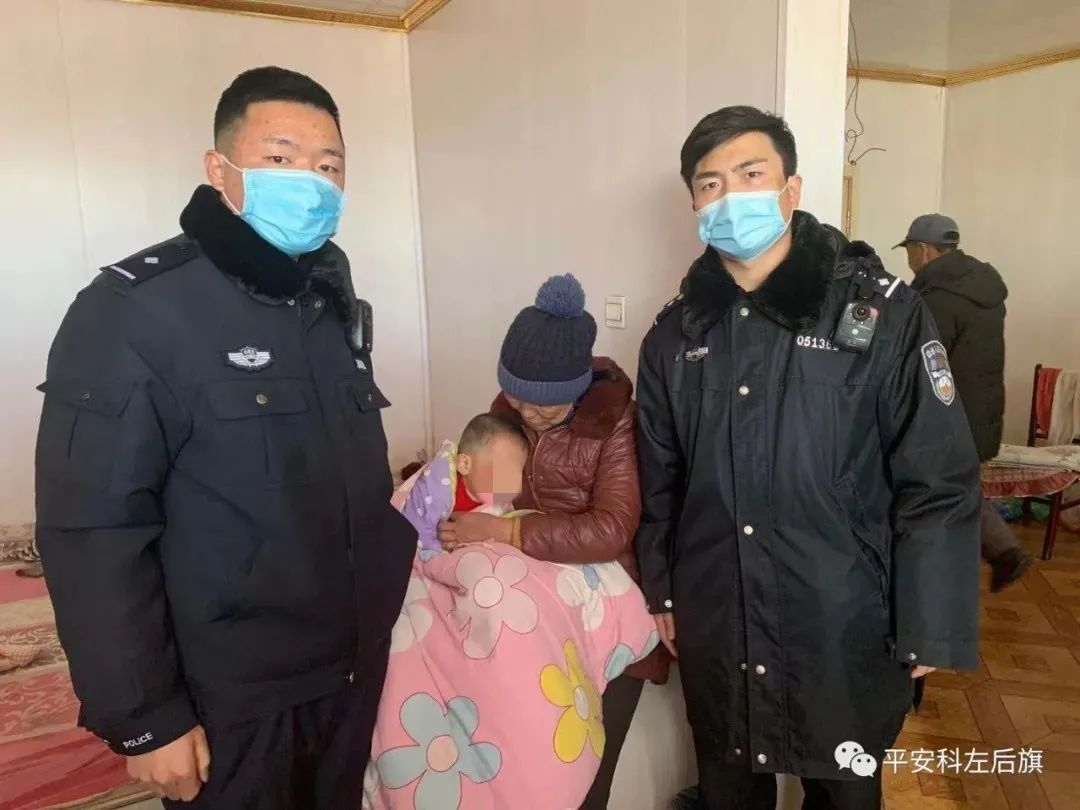 此時氣溫達零下14度,距離孩子失蹤已經過去一個半小時,民警立即詢問孩子姓名、體貌特征、所穿服裝并索要照片后向平安巴胡塔七級微信群推送孩子失蹤信息,發(fā)動協(xié)警、村干及群眾力量共同開展尋人工作,經過半小時的努力,終于在離村子3公里處的坨子坡上發(fā)現(xiàn)了睡眠中已經凍得發(fā)紫的孩子,民警包曉亮立即脫下自己的外套給孩子穿上并將其送回家中。經了解,孩子自己跑出家玩迷了路,由于又冷又累就睡著了。