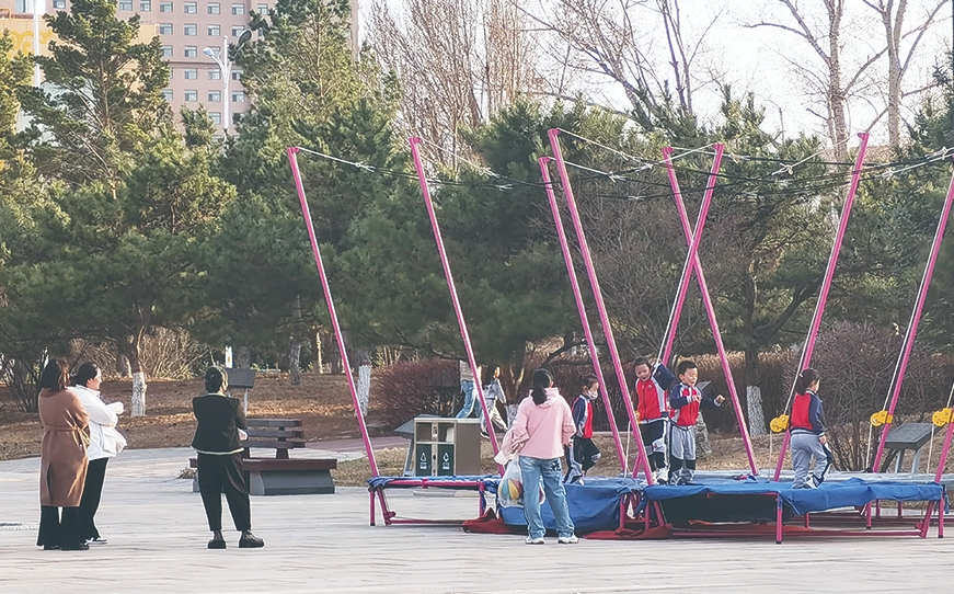 走進(jìn)烏蘭察布植物園,映入眼簾的是長(zhǎng)青的松柏,遠(yuǎn)處湖水已經(jīng)融化,倒映著正在漫步的市民的身影。家長(zhǎng)帶著放學(xué)的孩子們?cè)谥参飯@里散步玩耍,呼吸著新鮮的空氣。結(jié)伴而行的年輕人一起討論期待著花開樹綠后的場(chǎng)景。
