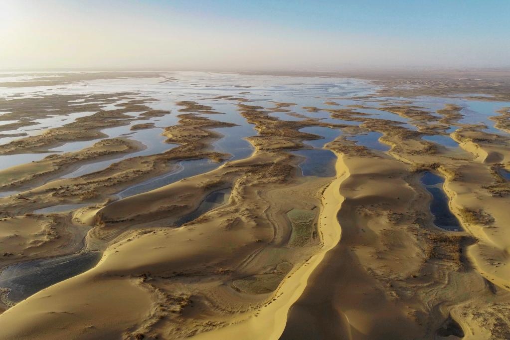 11月24日在內(nèi)蒙古烏海市拍攝的烏海湖景色(無人機照片)。