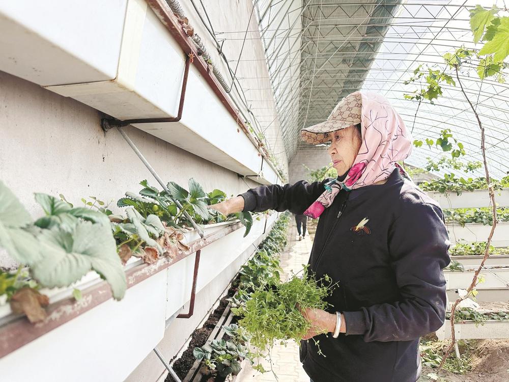 走進(jìn)草莓大棚內(nèi),濃濃的暖意撲面而來(lái)。抬眼望去,離地一米多的種植架上種滿了生機(jī)勃勃、長(zhǎng)勢(shì)喜人的草莓;穿梭在種植架間,一顆顆鮮紅欲滴、圓潤(rùn)飽滿的草莓宛如璀璨的紅寶石,從綠葉間“探出頭”來(lái),高高地懸掛在空中,散發(fā)著誘人的清香。種植戶牛尚海正在察看采用立體栽培技術(shù)的草莓長(zhǎng)勢(shì)情況?!斑@是一種三維立體種植方式,能夠充分利用空間和光照,大幅度提高生產(chǎn)效率。以前一畝地最多種8000株,現(xiàn)在能種2.4萬(wàn)株,產(chǎn)量提高了3倍,而且草莓個(gè)頭更均勻,賣相更好?!迸I泻8嬖V記者,這種種植方式不僅省工、省力,還降低了勞動(dòng)強(qiáng)度,摘草莓也不用彎腰了。此外,這種種植模式比傳統(tǒng)種植模式每畝節(jié)水50%。