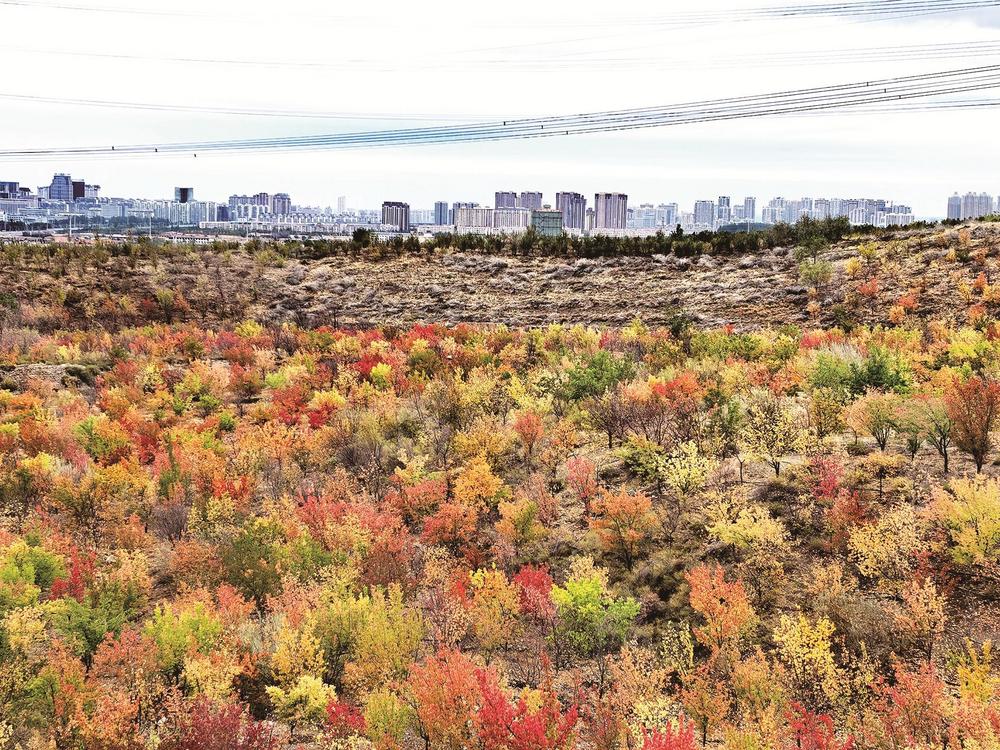 如果說黃河岸邊的秋景是溫柔的,那么甘德爾山的秋景則多了幾分豪邁與壯闊。沿著登山步道向上攀登,山路兩旁的灌木叢已經(jīng)變成了紅色、黃色、橙色,五彩斑斕,層層疊疊,像大自然打翻了調(diào)色盤。站在山頂俯瞰,整個烏海市區(qū)盡收眼底,黃河像一條金色的絲帶纏繞在城市邊緣。秋風(fēng)在耳邊呼嘯,帶著山間的清涼,讓人瞬間忘卻了城市的喧囂與煩惱。
