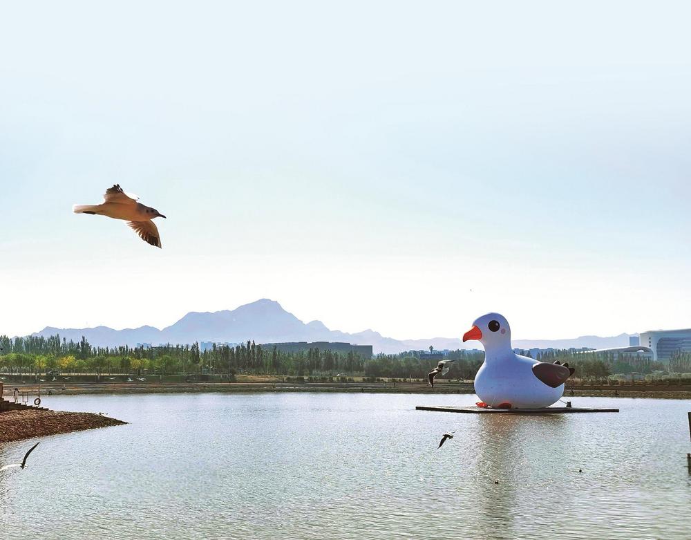 站在烏海湖畔旁,看著一片陽光灑在波光粼粼的水面上,泛著細(xì)碎的金光。在這充滿詩意的秋色里,主角“紅嘴鷗”天團(tuán)準(zhǔn)時赴約。它們穿著“白衣紅鞋”,時而在波光粼粼的湖面上輕盈滑翔,時而一個猛子扎下去,精準(zhǔn)捕獲水中的美味。