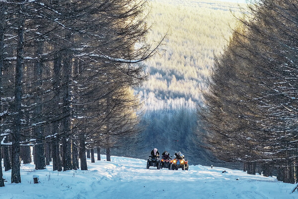 冰天雪地中,又滿是熱氣騰騰的活力景象。森林里的雪地摩托,飛馳而下帶起雪霧,盡顯速度與激情;冰面上,人們歡聲笑語,滑冰、抽冰尜等活動讓這里生機盎然,寒冷被熱情驅(qū)散。