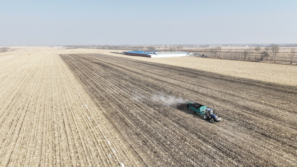 3月8日,農(nóng)民駕駛農(nóng)機在內(nèi)蒙古興安盟扎賚特旗音德爾鎮(zhèn)巨寶村一處農(nóng)田中拋撒有機肥(無人機照片)。驚蟄節(jié)氣后,內(nèi)蒙古興安盟扎賚特旗各項備耕工作有序推進。扎賚特旗是我國重要的產(chǎn)糧大縣,2024年糧食總產(chǎn)量達(dá)49.5億斤。(新華社記者 貝赫)