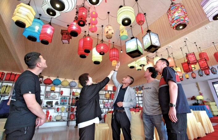 “我們有手工編織的宮燈、紗燈、吊燈等180多種款式的燈籠供消費者選擇?!苯眨灾螀^(qū)級非物質文化遺產(chǎn)項目——燈籠編織技藝傳承人杜學龍給游客介紹自己的產(chǎn)品。