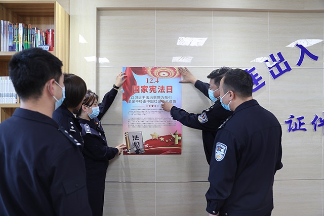 12月4日內蒙古出入境邊防檢查總站二連出入境邊防檢查站多措并舉,扎實開展全國第四個“憲法宣傳周”活動。