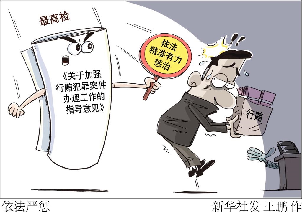 新華社北京12月9日電 最高人民檢察院9日發(fā)布《關(guān)于加強(qiáng)行賄犯罪案件辦理工作的指導(dǎo)意見》,意見強(qiáng)調(diào)以“遏源”“斷流”的堅(jiān)定決心和務(wù)實(shí)舉措,依法精準(zhǔn)有力懲治行賄犯罪。