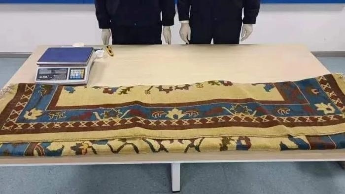深圳郵局海關(guān)關(guān)員在對過境貨物開展監(jiān)管時發(fā)現(xiàn),1票包裹機(jī)檢圖像可疑,隨即對其開箱查驗(yàn)。查驗(yàn)發(fā)現(xiàn),該票包裹內(nèi)有一塊做工精致的地毯,編織到地毯內(nèi)的透明細(xì)塑料管中藏匿有細(xì)粉末一批,毛重11555.8克。經(jīng)現(xiàn)場試劑檢測,判斷為冰毒。目前,海關(guān)緝私部門已介入調(diào)查處理。