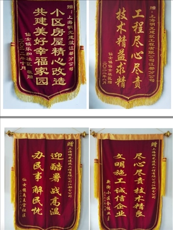 施工過程中,當地社區(qū)及居民給施工方送去的部分錦旗。受訪者供圖