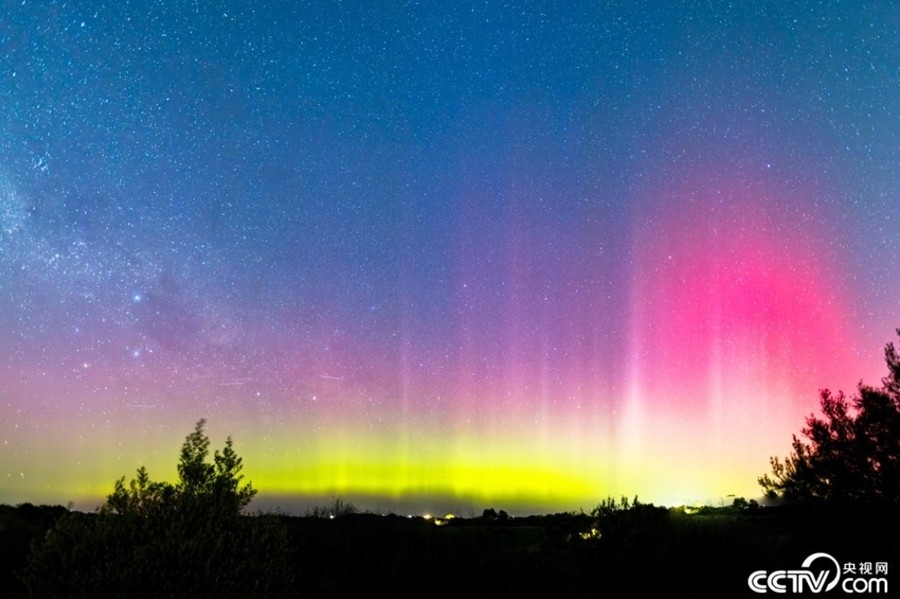 當?shù)貢r間2023年11月5日,澳大利亞墨爾本,太陽活動的增加導致澳大利亞南部地區(qū)出現(xiàn)了罕見的南極光。