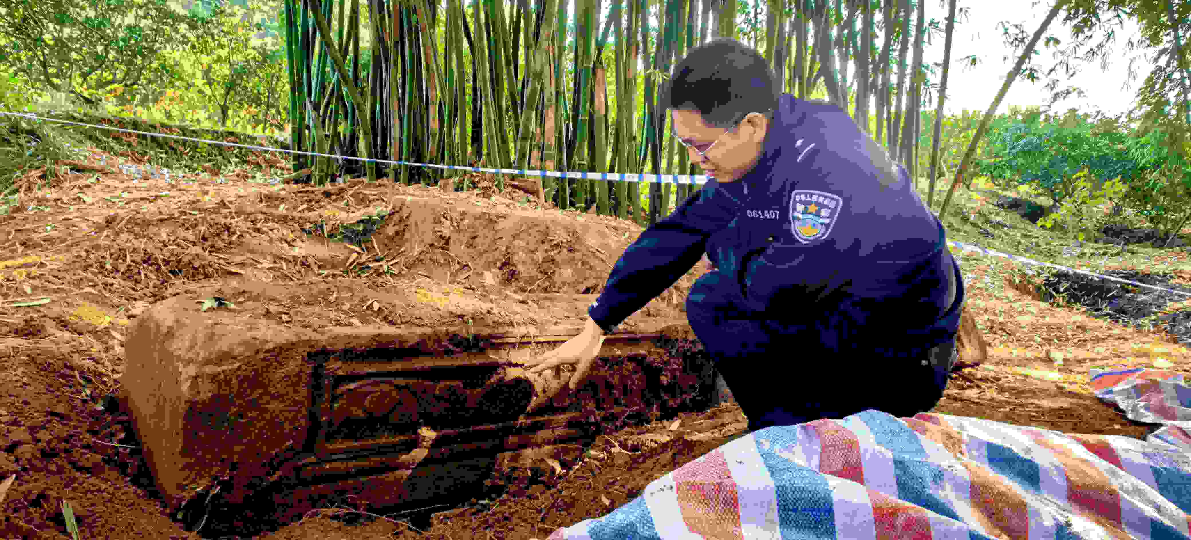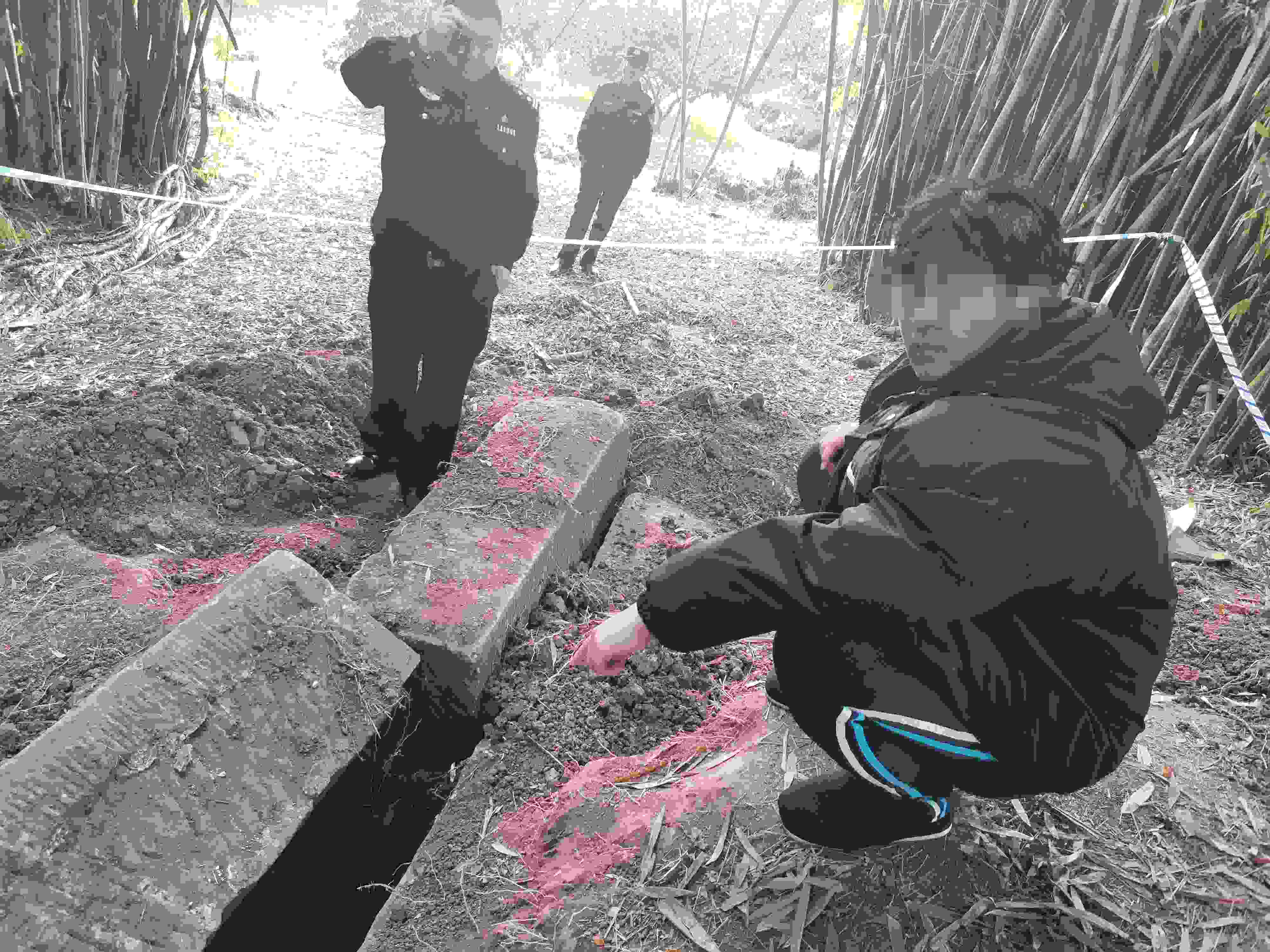 韓某家族的這座祖墳地處一片竹林中,離最近的房屋直線距離不足20米。為此,他趕到現(xiàn)場(chǎng)發(fā)現(xiàn),墓室上的土有多處被挖痕跡,但墓門上的石頭還沒(méi)被打開(kāi)?!斑@個(gè)地方是條大路,白天也沒(méi)人看到有人來(lái)過(guò)?!表n某懷疑有人盯上了他家的祖墳,想要盜墓,并判斷那些人還會(huì)再來(lái)。