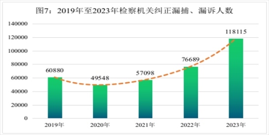 全國(guó)檢察機(jī)關(guān)共糾正公安機(jī)關(guān)遺漏提請(qǐng)逮捕的犯罪嫌疑人19485人,同比上升12.8%;糾正遺漏起訴同案犯98630人,同比上升66%,追捕、追訴力度不斷加大。糾正漏捕判處三年有期徒刑以上刑罰8781人,糾正漏訴判處有期徒刑以上刑罰78137人,共計(jì)86918人,糾正漏捕、漏訴判處有期徒刑以上刑罰率96.5%,同比增加11.1個(gè)百分點(diǎn),質(zhì)量總體較高。