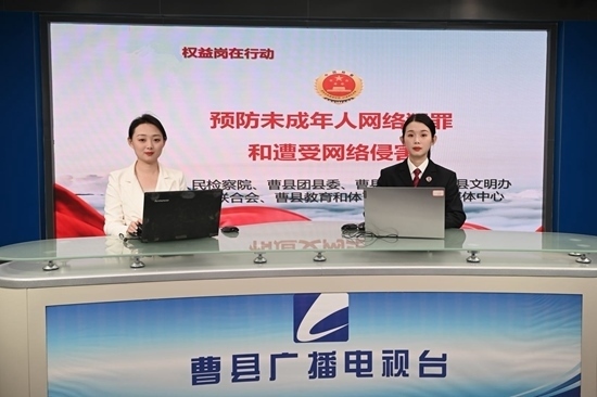 山東省曹縣人民檢察院未成年人檢察部在電視臺(tái)開展直播課程。