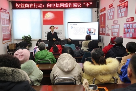 吉林省吉林市船營(yíng)區(qū)人民法院在向陽(yáng)街道北安社區(qū)開展“向電信網(wǎng)絡(luò)詐騙說‘不’”普法講座。