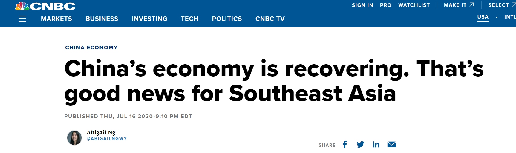 美國消費(fèi)者新聞與商業(yè)頻道(CNBC)17日發(fā)表文章,題為《中國經(jīng)濟(jì)正在復(fù)蘇,這對東南亞是個好消息》。文中指出,作為東盟出口商品最多的國家,中國經(jīng)濟(jì)穩(wěn)步增長成為東南亞國家“關(guān)鍵資產(chǎn)”。“盡管還有許多挑戰(zhàn),這一增長重新點(diǎn)燃了中國經(jīng)濟(jì)可以幫助其他國家復(fù)蘇的希望”,華僑銀行(OCBC Bank)經(jīng)濟(jì)學(xué)家維蘭托(Wellian Wiranto)16日表示。