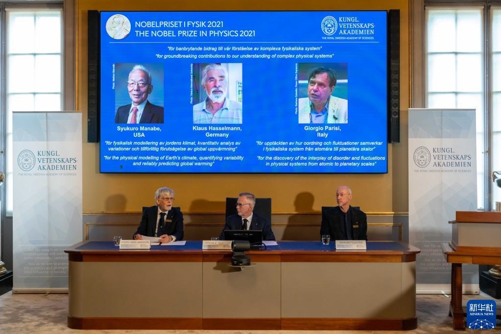 新華社斯德哥爾摩10月5日電(記者和苗 付一鳴)瑞典皇家科學(xué)院5日宣布,將2021年諾貝爾物理學(xué)獎授予三名科學(xué)家,其中,日裔美籍科學(xué)家真鍋淑郎和德國科學(xué)家克勞斯·哈塞爾曼因“建立地球氣候的物理模型、量化其可變性并可靠地預(yù)測全球變暖”的相關(guān)研究獲獎,意大利科學(xué)家喬治·帕里西因“發(fā)現(xiàn)了從原子到行星尺度的物理系統(tǒng)中無序和波動的相互作用”而獲獎?! ?br/>