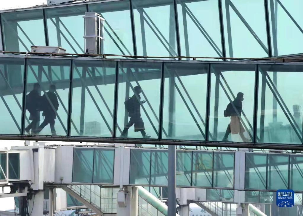 3月14日,中國公民乘坐臨時(shí)航班抵達(dá)大連周水子國際機(jī)場。新華社發(fā)(大連機(jī)場提供)